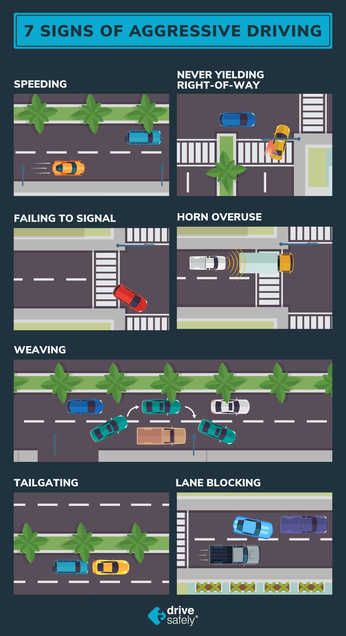 The seven most common signs of aggressive driving are: